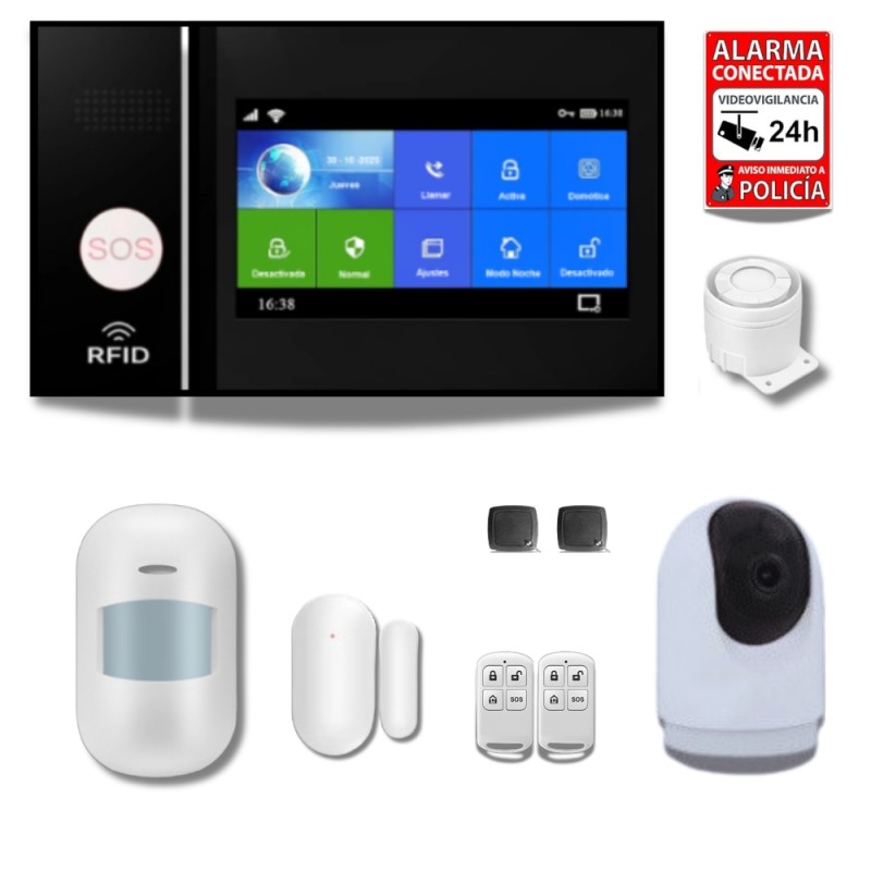 Alarma sin cuotas con Cámara HD 4MP, ideal para pisos, apartamentos, segunda vivienda, oficinas, negocios.