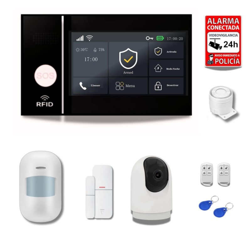 Alarma sin cuotas, Modelo WIFI 4G G205 con Cámara + Soporte técnico profesional incluido