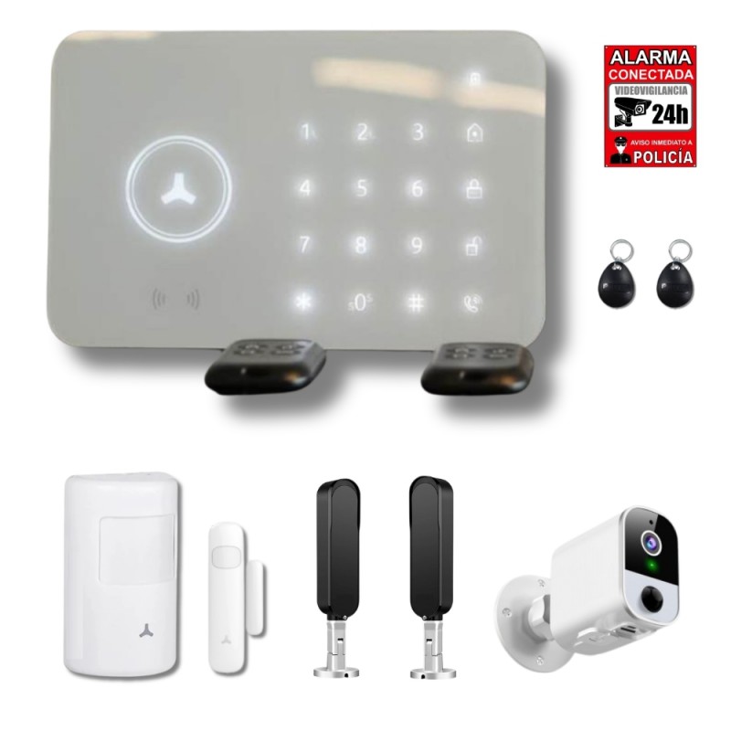 Cartel alarma conectada. Alarma vigilancia conectada 24h.