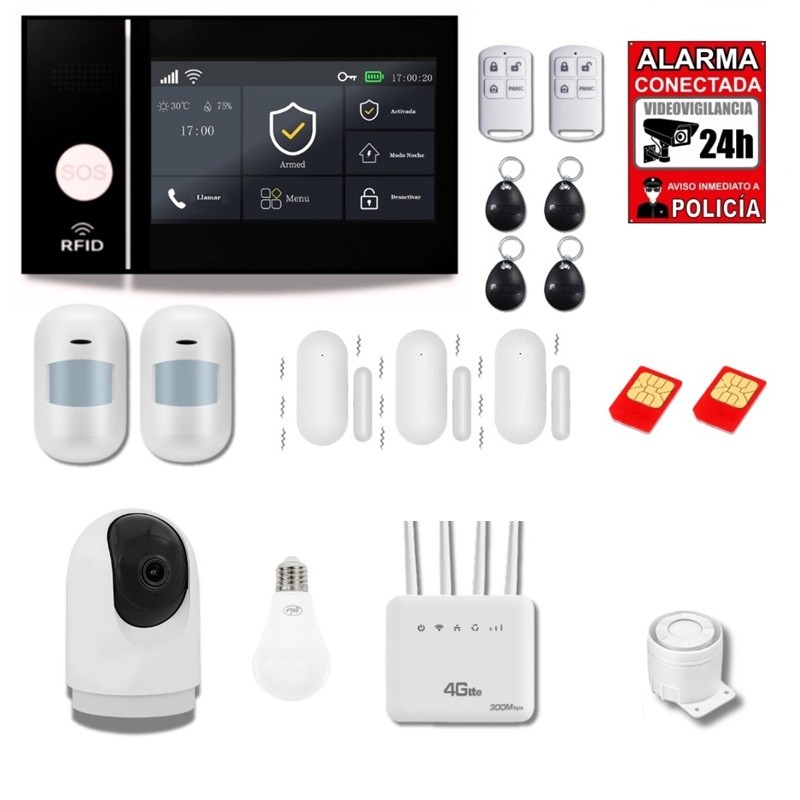 KIT Alarma para chalet con cámaras + Soporte técnico incluido