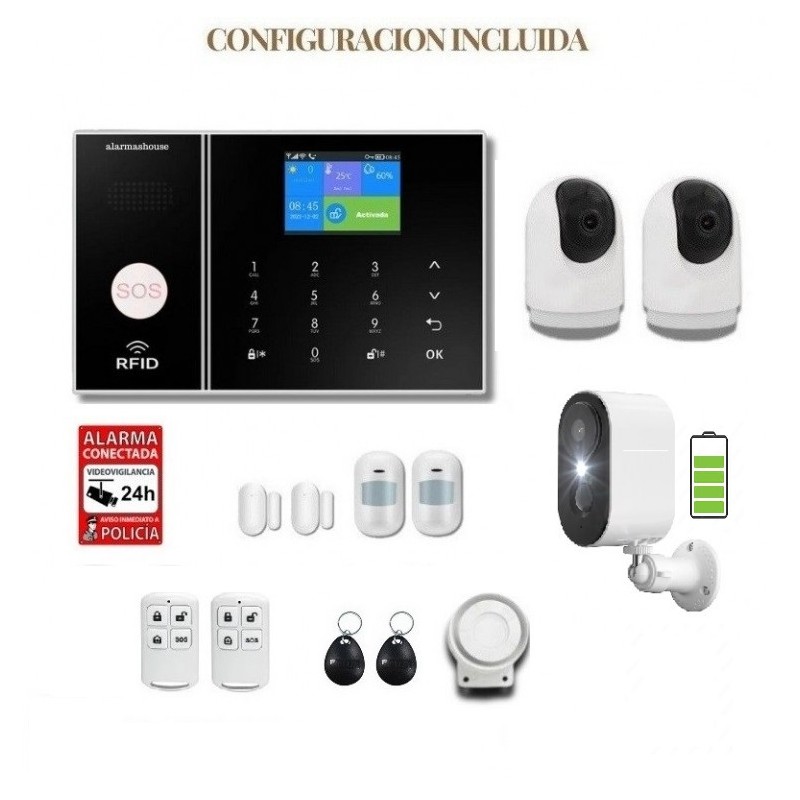 Alarma con cámara exterior + baterias larga duración y cámaras de interior giratorias HD