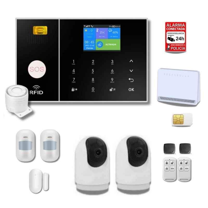 Alarma sin cuotas G205 más router 4G. Para sitios sin wifi