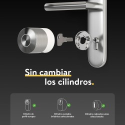 𝐀𝐜𝐜𝐞𝐬𝐨 𝐫𝐞𝐦𝐨𝐭𝐨: Gracias al Wi-Fi integrado, puedes controlar tu puerta de forma remota sin bridge ni hub. Gestiona tu Smart Lock, asigna permisos de acceso y activa funciones inteligentes.