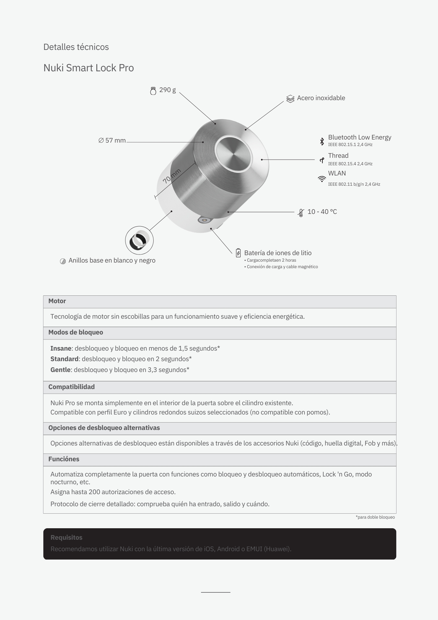 Requisitos: Recomendamos utilizar los productos de Nuki con las últimas versiones de iOS, Android o EMU