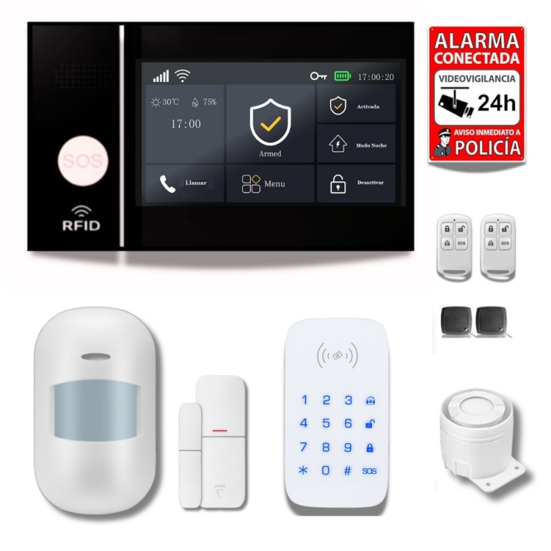 Control de la alarma: Desde el smartphone APP, mandos a distancia, llaveros RFID, con llamada al panel de alarma.