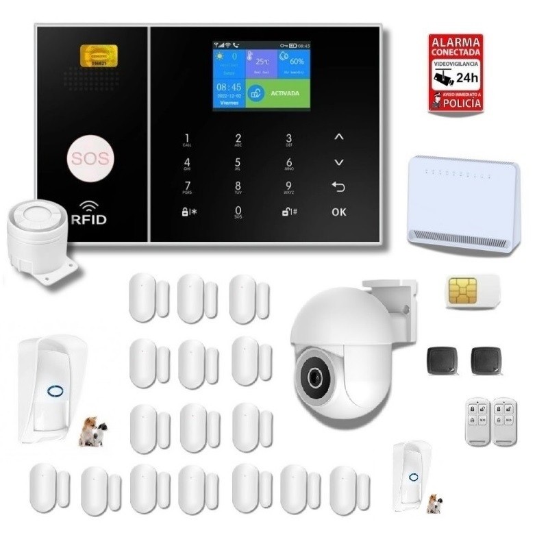 1º Le avisará en caso de que detecte movimiento o se abra alguna puerta o ventana de su vivienda, etc, vía mensaje push APP WIFI o en caso de fallo por SMS y llamada móvil a su teléfono y al de los familiares, amigos... que usted quiera en pocos segundos. Llamada de aviso hasta 5 números de teléfono diferentes y 5 números para mensajes SMS para uso con tarjeta SIM.