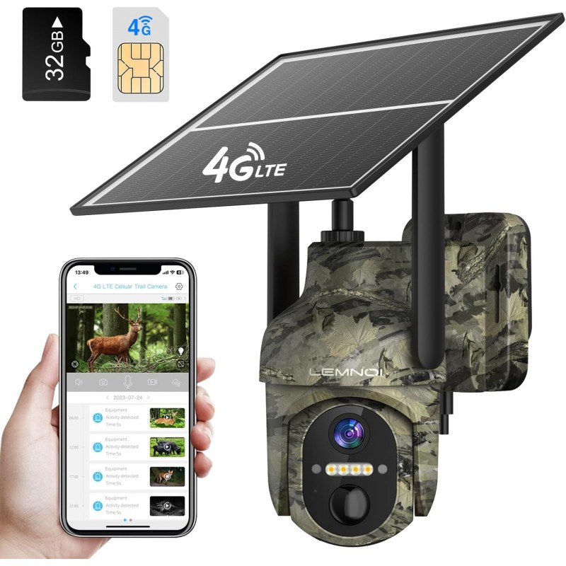 Esta cámara solar 4G para exteriores cuenta con una batería interna de 10400 mAh y con un panel solar de 6W, lo que permite el almacenamiento de energía incluso en áreas sin suministro eléctrico y logra un funcionamiento ininterrumpido durante todo el año. Con su diseño de camuflaje y impermeable IP66, es ideal para la vigilancia en lugares remotos como la caza, la observación de vida silvestre, granjas, ranchos y casas de vacaciones.